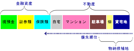 不動産の中でも自宅などのように残さなければいけない不動産、できれば残したい不動産と、万一のときは手放してもやむを得ない不動産というように、収益性、換金性、立地、心情的な点などを勘案し、優先順位を付け、優先順位の低い不動産を物納候補地とします。物納申請財産を選択する際のポイントは、推定相続税額が推定時価を上回っている土地や、一般的な市場では流通しづらい、広大地、変形土地、貸宅地などです。