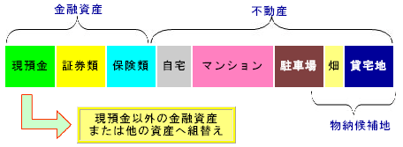推定相続財産に現預金が多額にある場合は相続が発生した場合、優先的に現預金を納税に充てなければいけない為、物納制度が活用できません。(推定相続人に現預金が多額にある場合も同様です)したがって物納制度の利用を検討している場合は健在なうちに現預金を他の資産に組み替え、運用形態を変えることも検討しなければいけません。